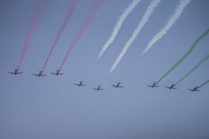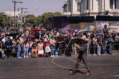 Aurea Del RosarioEl desfile avanzó sobre las avenidas 5 de Mayo, Eje Central, Juárez y Paseo de la Reforma.Aurea Del RosarioEste acto cívico militar existe informalmente desde 1928 con una carrera de relevos y hasta 1941 se consolidó como un evento oficial.Aurea Del RosarioEl desfile revolucionario cambió de ruta por una manifestación organizada en nombre de la generación Z.Aurea Del RosarioUna niña caracterizada de Adelita se prepara para el desfile la mañana del 20 de noviembre.Aurea Del RosarioEl discurso de Claudia Sheinbaum, presidenta de México, se enfocó en un llamado a la paz.Aurea Del RosarioEn total, 23 aeronaves fueron desplegadas para esta conmemoración.Aurea Del Rosario