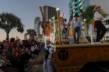 Todo eran risas este martes en el larguísimo malecón de Mazatlán, niños corriendo, echándose nieve artificial, confeti, pompas de jabón, riendo, en fin, protagonistas de un ejercicio de despreocupación genuino. El sol calentaba en el sur de Sinaloa, en perfecta armonía con la brisa, fresca y abundante, coletazos del invierno suave del Pacífico. Desde primera hora, cientos de personas ocupaban los márgenes de la calzada, provistas de sillas, taburetes y neveras portátiles, cerveza en mano, con la única inquietud de los trajes que vestirían los bailarines, ya en la tarde. La crisis de violencia que sufre esta zona del litoral mexicano en las últimas semanas parecía no existir, o no importar, almacenada, a la fuerza, en el desván de los problemas por resolver. Hoy, último martes de fiesta, no era día de torcer el gesto.