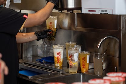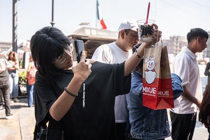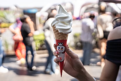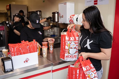 Filas interminables y hasta cuatro horas de espera por un helado en cono de ocho pesos (0,46 dólares) o una limonada de 20 pesos (un dólar, aproximadamente) en la primera sucursal de México y de Latinoamérica de la cadena china de bebidas Mixue. Ni el sol que cala al mediodía en la explanada del Zócalo de Ciudad de México, sobre la calle Monte de Piedad, hace que la gente desista de la fila. “Yo llevo casi una hora formada”, dice una joven que está a unas 12 personas de llegar al mostrador e intenta cubrirse en una diminuta sombra de un puesto de aguas, dulces y cigarros. La cadena abrió la sucursal en la capital mexicana durante el fin de semana de San Valentín y desde entonces, las filas son inmensas. “Hay gente que ha esperado hasta cuatro horas para probar una de las bebidas. Los primeros días esto era un caos”, comenta la dueña del puesto.