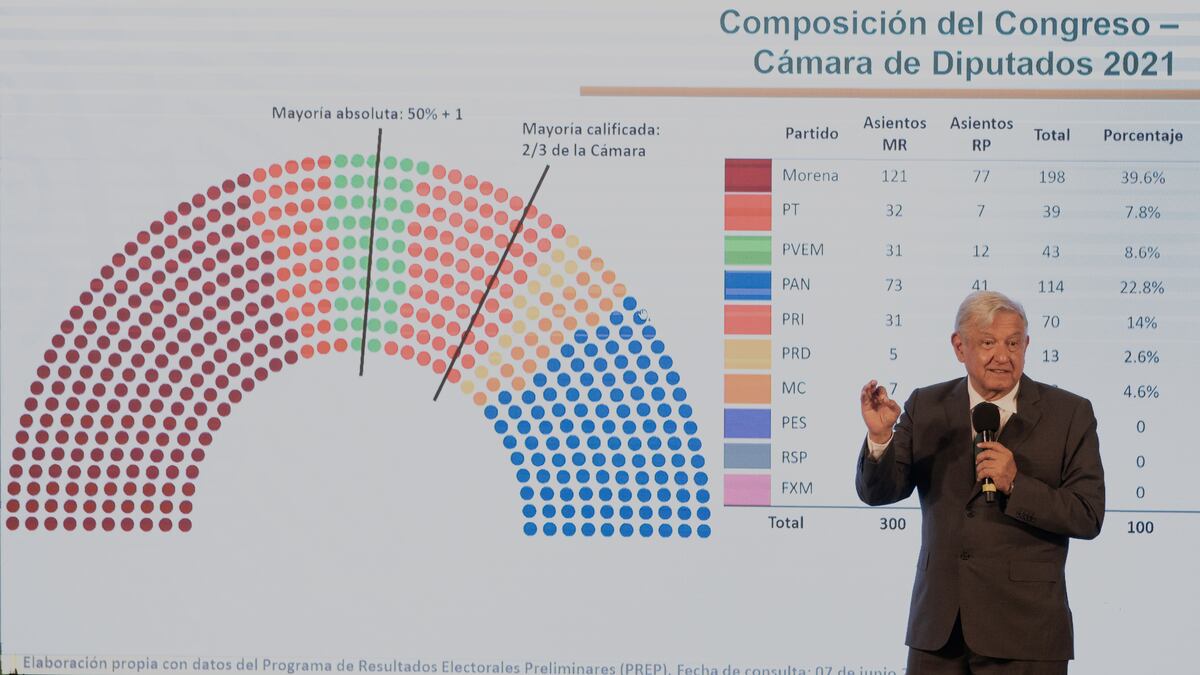 Morena mantuvo la mayoría con aliados, pero perdió un 20% de curules en el Congreso. Y sobre todo, se quedó muy lejos de la mayoría calificada (el umbral de los 333) necesarios desatascar medidas como la reforma eléctrica o el rescate de Pemex, suspendidas en los juzgados. O cambios de mayor calado aún en el sector energético o en la legislación electoral. Las claves de bóveda sobre las que López Obrador pretende reconfigurar el andamiaje institucional y productivo del país.