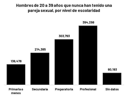 Algo interesante es que, a diferencia de la narrativa incel –según la cual los hombres con menos recursos económicos tienen menor probabilidad de encontrar una pareja sexual–, los datos muestran que en México la mayoría de los hombres que nunca han tenido pareja tienen educación profesional. Es decir, no se encuentran entre los eslabones más vulnerables de la población.