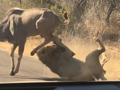 Los turistas presenciaron cómo el antílope se convirtió en el alimento del léon justo delante suyo