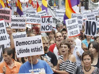 Un grupo de 30 indignados abuchea a los sindicatos en la marcha de Barcelona