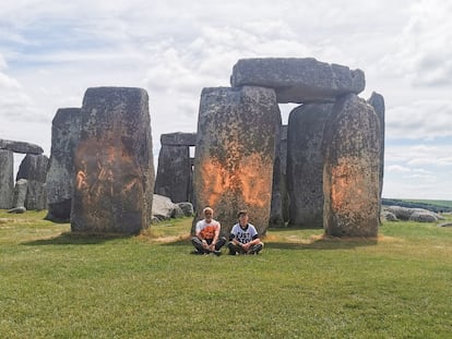 Dos ecologistas detenidos tras rociar con pintura naranja el monumento de Stonehenge