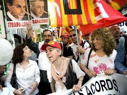 Tres detenidos en Madrid por desobediencia y resistencia a la autoridad, según la policía Varios centenares de trabajadores se manifiestan en el centro de Barcelona Metro de Madrid y Transportes Metropolitanos de Barcelona sufren paros Los servicios de Cercanías, AVE, Media y Larga Distancia, también afectados