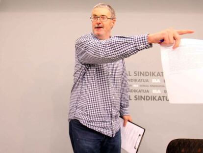 Adolfo Muñoz afirma que los Gobiernos de Rajoy y Urkullu "deben sentir la presión social". No concreta fechas para el paro