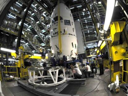 El lanzador Vega está listo en la base espacial de Kourou para su primer vuelo Pondrá en órbita un satélite para medir un efecto de la relatividad
