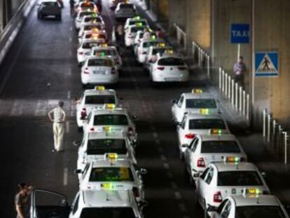 Desde ayer los taxis cobran un tarifa fija de 30 euros desde Barajas a destinos de la almendra central. Los profesionales piden que se publicite la medida