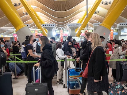Pasajeros extracomunitarios confirman largas esperas en los aeropuertos de España e internacionales por la súbita demanda de viajes y la falta de personal