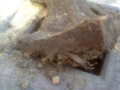 La caída de la parte superior del tronco no ha producido heridos El acceso a la calle Sevilla ha estado cortado para realizar la tala