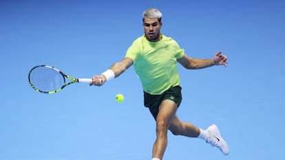 El español vence con holgura a Aliassime (6-2 y 6-4, tras 1h 22m) y se reencontrará con el italiano en el broche de Turín, el sexto cruce entre ambos esta temporada