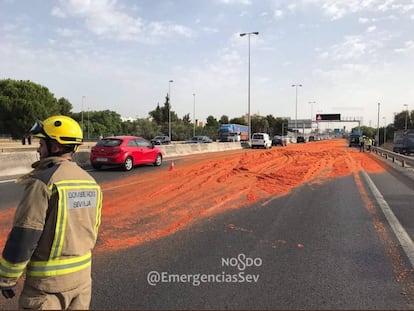 Una carga de tomates sobre la autovía provoca un gran atasco en Sevilla