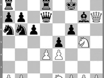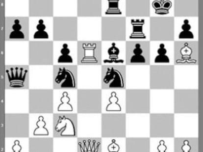 Blancas: I. Cheparínov (Bulgaria, 2.709). Negras: P. Eliánov (Rusia, 2.678).Defensa Eslava (D15). Abierto de Reikiavik, 23-2-2013.