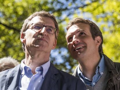 El líder del PP, Pablo Casado, y el presidente de la formación en Galicia, Alberto Núñez Feijóo, han pedido en A Coruña la unión del voto de la derecha a favor de su partido