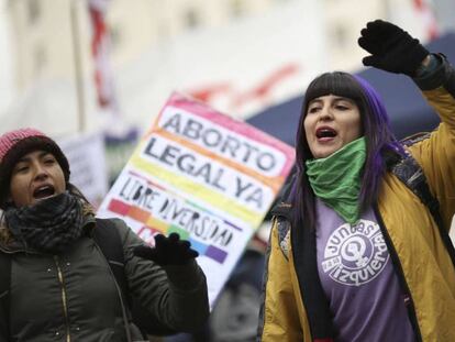 Varios colectivos feministas, incluido Las Tesis de Chile, se movilizan en Buenos Aires y otras grandes ciudades de Argentina para reclamar la aprobación de una ley de plazos