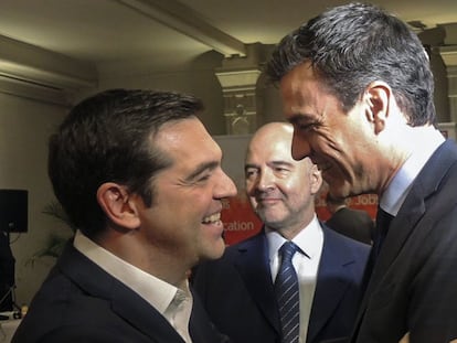 El candidato socialista solicita al primer ministro griego que le diga al líder de Podemos que "desbloquee la situación"