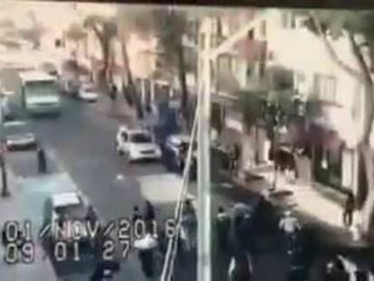 Un vídeo de las cámaras de seguridad pública muestra como una turba se enzarza a golpes en la calle donde se estaba rodando la película