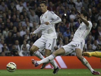 Acosado por Messi en la lucha por el 'pichichi', el portugués se irrita cuando Arbeloa se le adelanta en el 3-0