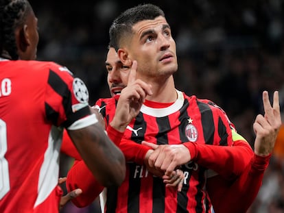 El jugador español marcó el segundo gol para el Milan en el Santiago Bernabéu y lo celebró con un gesto solidario