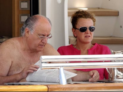 El dueño de Inditex ha sido fotografiado en la cubierta de un barco acompañado de su esposa Flora Pérez, su hija Marta y unos amigos de vacaciones en Saint-Tropez