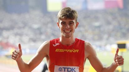 El gallego, de 21 años, remonta en el final de una final velocísima de 800m en la que se impuso el norteamericano Donavan Brazier con récord de los campeonatos (1m 42,34s)