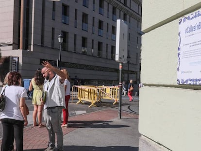 Los ciudadanos que pasen por las calles del barrio Ópera de Madrid se encontrarán con 100 placas que taparan el nombre de 10 calles del barrio y las de la plaza Ramales los próximos cuatro días