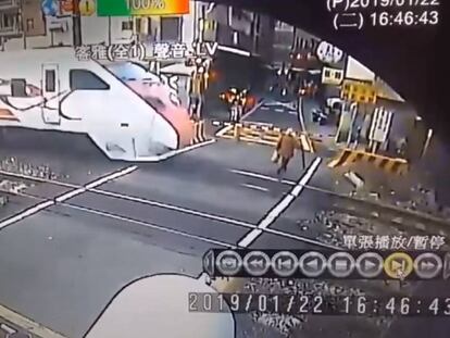 Las cámaras de seguridad registraron a la mujer cruzando la vía sin precaución en Taiwán