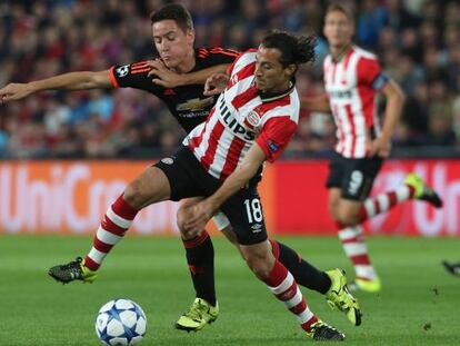 Héctor Moreno marcó ante el Manchester United, aunque una entrada suya acabó con la fractura de tibia y peroné del inglés Shaw, y Guardado, ídolo en Eindhoven, inició la jugada del triunfo
