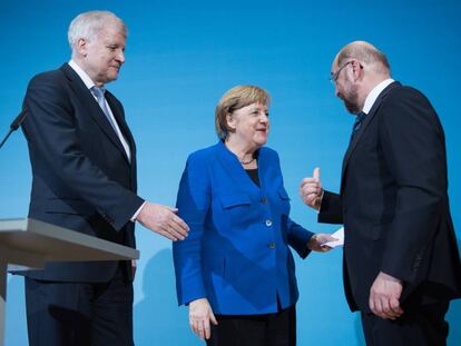 Merkel, Schulz y Seehofer se juegan su futuro político en un proyecto de gran coalición logrado gracias a un desembolso millonario