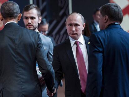 Los presidentes de EE UU y Rusia conversan de manera informal al inicio de la cumbre de líderes del APEC en Lima