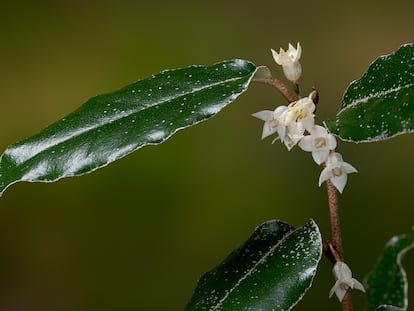 El pequeño tamaño de sus flores blanquecinas, ocultas por las hojas y las ramas de colores plateados, dificultan el descubrimiento de esta planta de fragancia suave y dulce que está en plena floración. Sin embargo, a su paso dejan los pulmones llenos de la alquimia que desprenden sus corolas