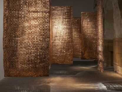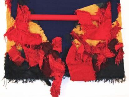 La artista vasca exhibe en el espacio de EL PAÍS una impactante escultura suspendida en el aire. Los monarcas abren oficialmente la feria que hoy podrá visitar el público