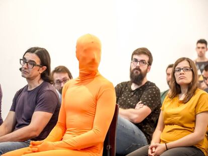 Un artista anónimo, atraviado con un ajustado traje de licra, protagoniza enigmáticas intervenciones en espacios culturales