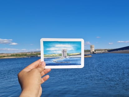 Esta construcción neogótica es parte de la antigua presa, que quedó sepultada bajo las aguas al construirse una nueva