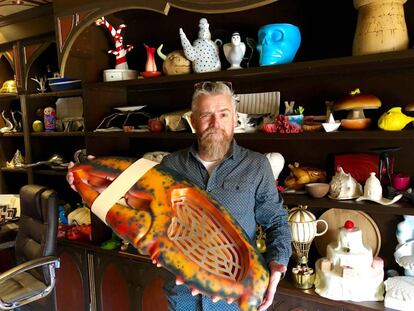 El artista cerámico lleva cuatro décadas recibiendo visitas en su taller junto al playazo más dilatado de Galicia