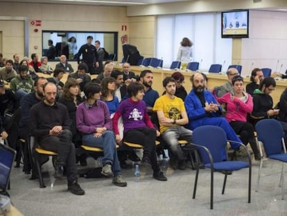 La vista contra los supuestos agresores de los diputados empieza en la Audiencia Nacional La Fiscalía pide para los 20 procesados, uno de ellos huido, cinco años y medio de cárcel "Aquí se juzga el derecho a concentrarse ante nuestros políticos", se defiende un imputado