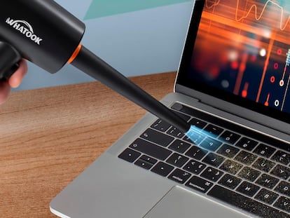 Este pequeño soplador elimina el polvo de manera muy eficiente en teclados, ordenadores o electrodomésticos, incluye cinco boquillas y su autonomía es extensa