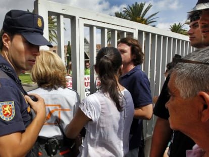 Un centenar de docentes se quedan al sol sin poder realizar sus trámites oficiales La Consejería de Educación cierra la verja ante el miedo a las protestas de interinos