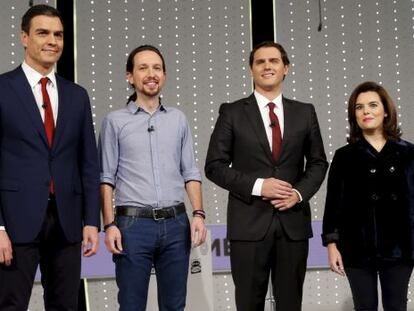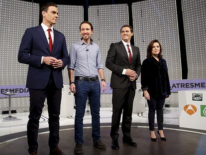 Pedro Sánchez (PSOE), Albert Rivera (Ciudadanos), Pablo Iglesias (Podemos) y la vicepresidenta del Gobierno, Soraya Sáenz de Santamaría (PP) han debatido durante dos horas en Antena 3 y La Sexta