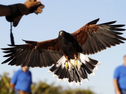 La Comunidad ensaya técnicas de cetrería para evitar el ataque a los cultivos de uva en la región