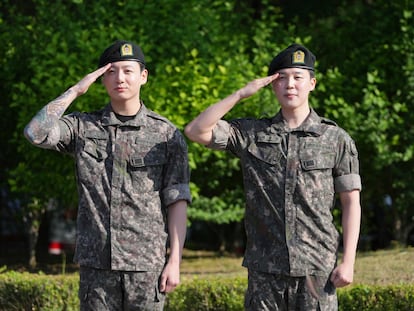 Jimin y Jungkook han sido los últimos cantantes en abandonar el Ejército, donde se alistaron en 2023 para cumplir con sus obligaciones en Corea del Sur después de que la ‘boyband’ anunciara un “receso musical”