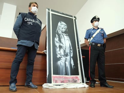 Las autoridades encuentran la puerta de la sala con un mural del artista de Bristol en la región de los Abruzos año y medio después del robo en París