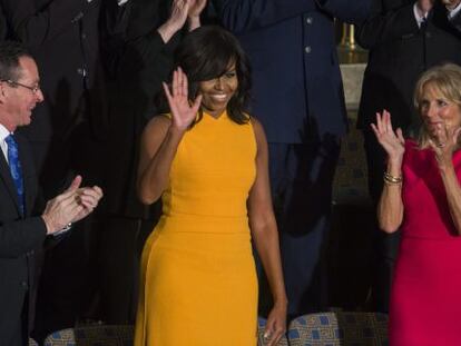 La primera dama se ha convertido en embajadora de la moda americana. El modelo de Narciso Rodríguez, que llevó al discurso sobre el estado de la Unión, se quedó sin existencias en 50 minutos