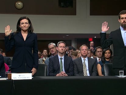 Jack Dorsey y la directora de operaciones de Facebook hacen un mea culpa en el Congreso de EE UU. "Fuimos demasiado lentos en actuar".