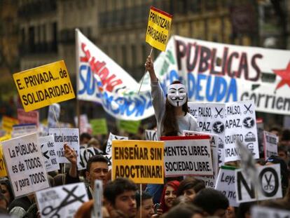 Miles de jóvenes se manifiestan en varias ciudades españolas en el segundo día de huelga ¡Menos policía, más educación!, coreaban en la manifestación de Madrid Diez jóvenes han sido detenidos en Pamplona, cuatro en Bilbao y uno en Madrid