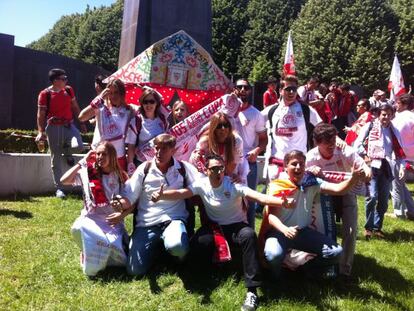 10.000 sevillistas toman la capital del Piamonte junto a miles de benfiquistas para formar una enorme marea rojiblanca