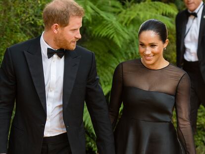 Los duques de Sussex charlaron con la diva y su marido, Jay-Z, durante el estreno europeo en ‘El Rey León’ en Londres. Para la ocasión, Markle eligió un diseño negro con transparencias de Jason Wu.