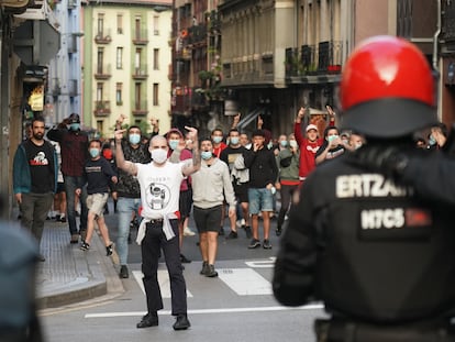 Más de cien antifascistas han lanzado objetos a la Ertzaintza y cruzado contenedores contra la presencia de Ortega Smith