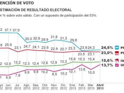 El desgaste de PP y PSOE puede dar paso a un sistema con cuatro partidos Populares y socialistas necesitarían pactar con IU o UPyD para poder gobernar