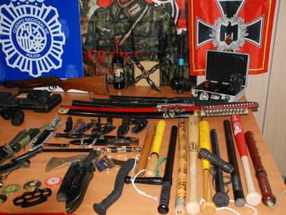 La Policía interviene más de un centenar de armas blancas, bates, grilletes y pistolas